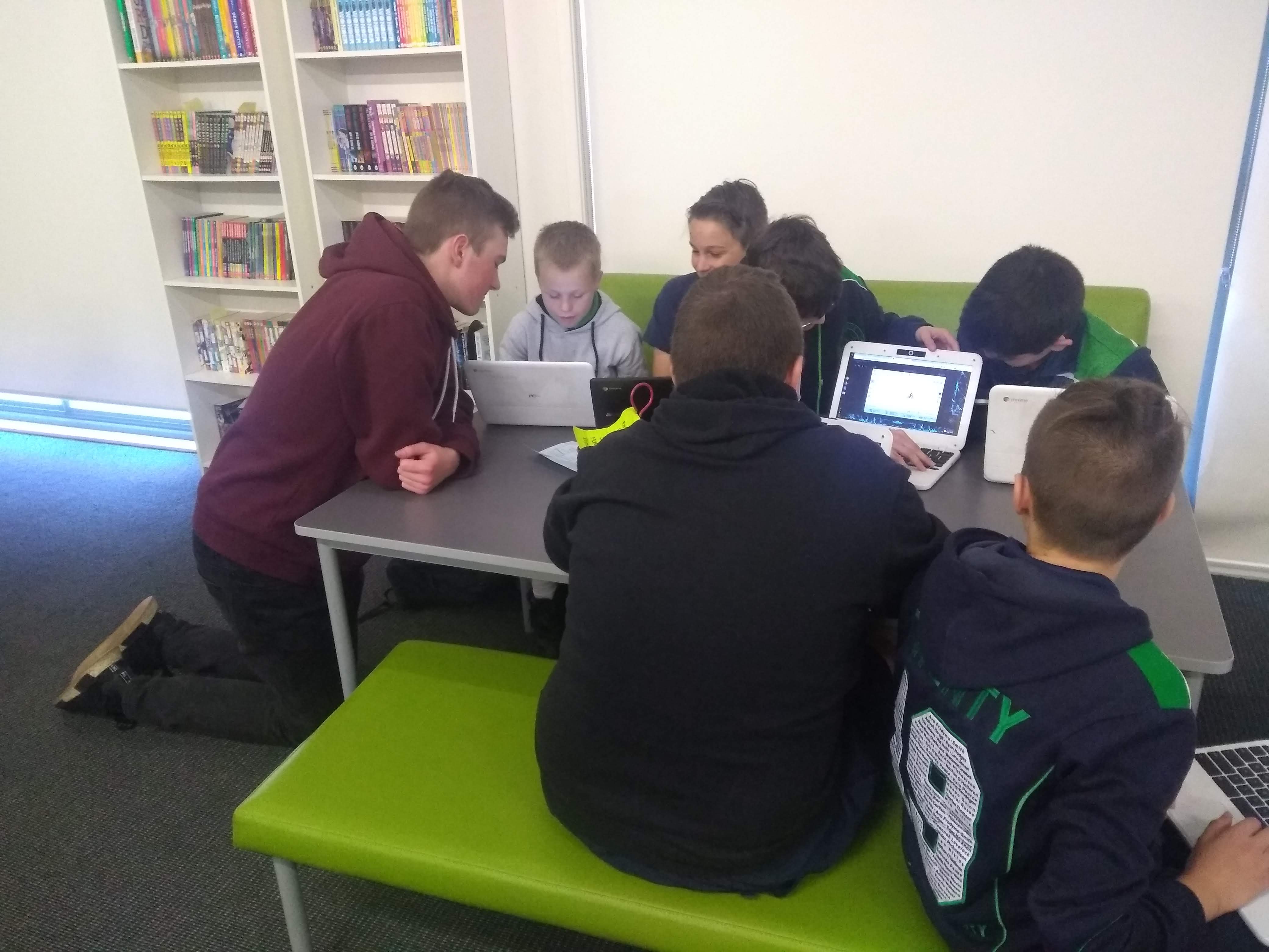 By mentoring the primary students in media arts Delia, Yara and Steven were able to answer both media arts and general questions the students had around college. The primary students really enjoyed interacting with older students.