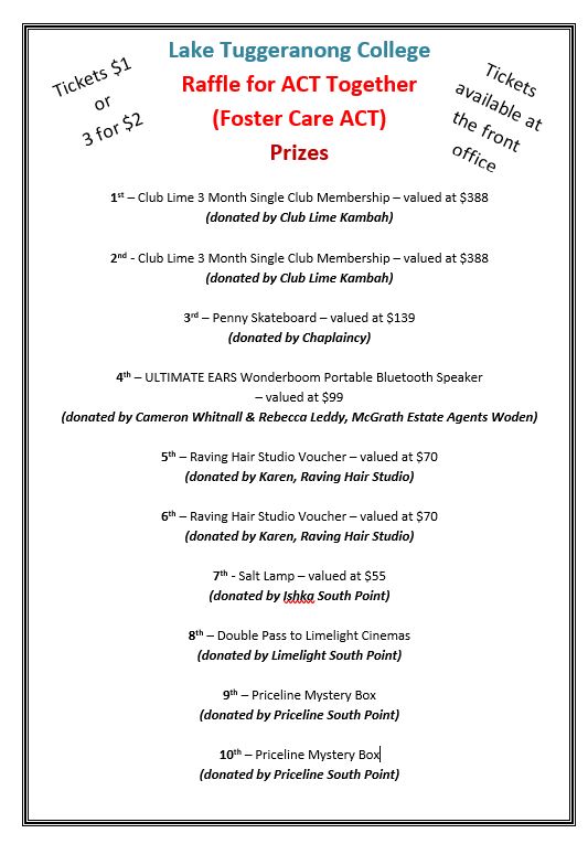 There will be external organisations who work in different areas that support students and the wider community come and share what services they offer. This year we’re also fundraising for ACT Together (foster care providers in the ACT).