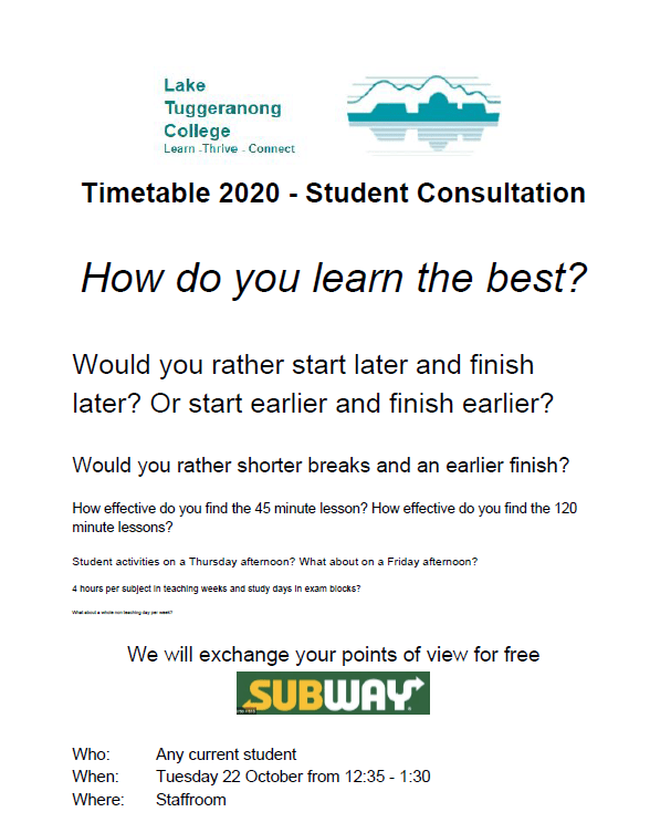 Tuggeranong Community Council’s Youth Engagement sub-committee launched a survey on the 20th September to help us better determine what young people want for Tuggeranong. We want to pass on their concerns to the relevant people and incorporate their ideas into possible future submissions to government.