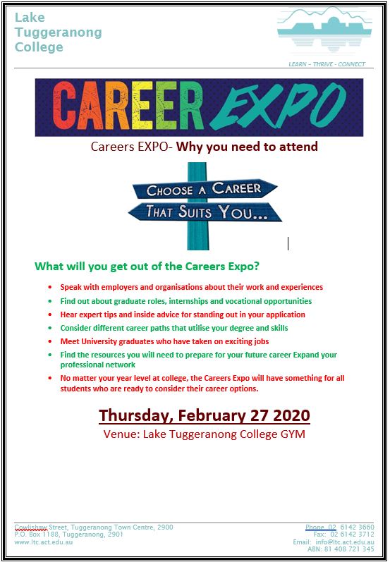 The Careers Expo is an annual event at L.T.C. For some students it will be the first chance to speak with employers or to meet university graduates who have taken on exciting jobs.