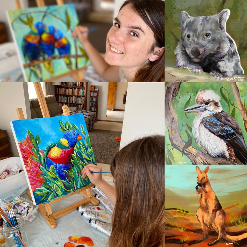 In just over a week Cait had orders for over 300 cards and posters, 8 orders for canvas commissions and spent a large component of the remaining holidays in what was my dining room but has since become an art studio. Her efforts have so far raised $1750 dollars, with artworks sent to places across Australia and overseas. She has donated to both Wildlife Rescue South Coast and Sleepy Burrows Wombat Sanctuary near Gundaroo.