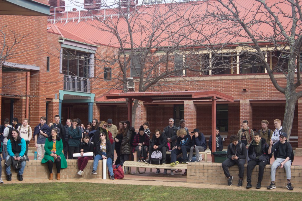The Gathering during Week 17 will be remembered as the first time members of Lake Tuggeranong College has been able to assemble since the Covid 19 lock down and return has taken place. From the photographs below you can see the energy and spirit of the occasion, held within the courtyard at Lake Tuggeranong College.