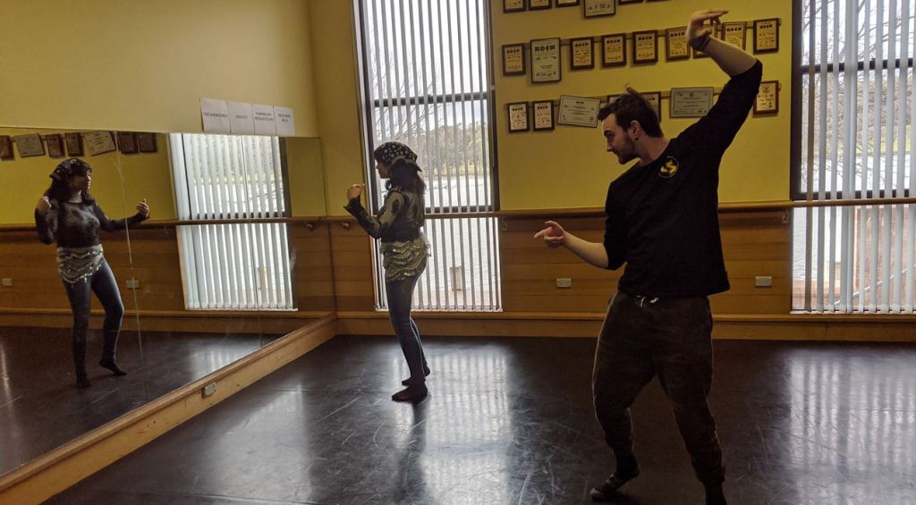 Students were learning smooth hip movements in Bellydance. They learnt how to do vertical and horizontal figure eighths with their hips.