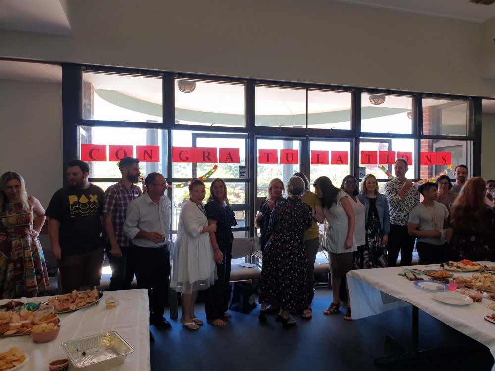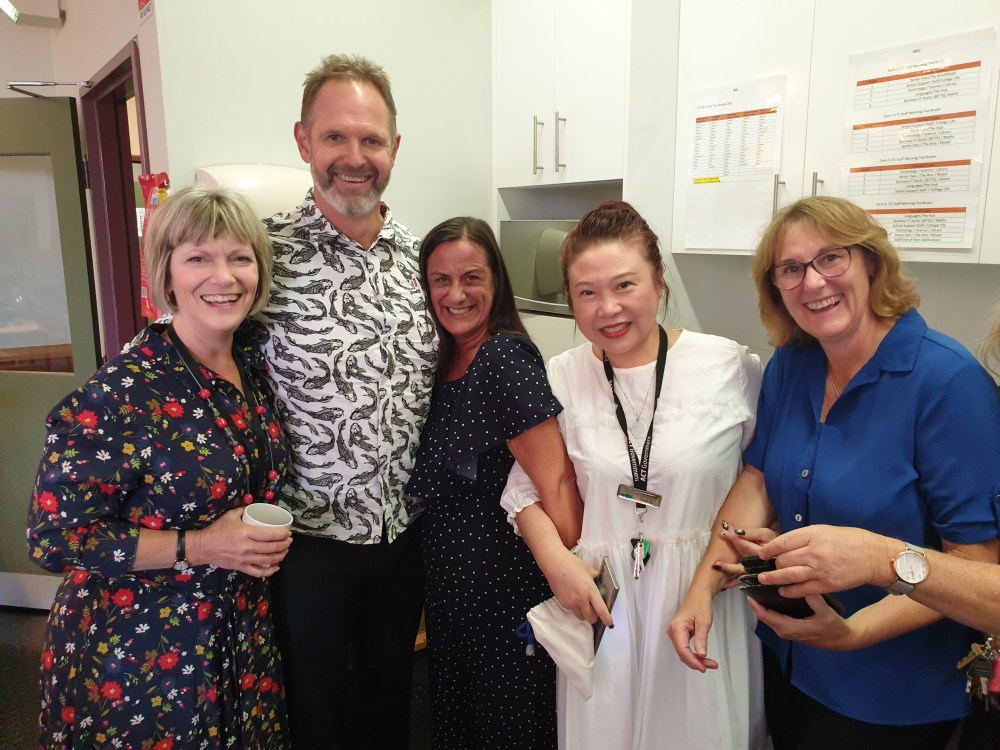 Under some circumstances the photos can tell a story. At today’s farewell Julie endured a farewell song, from the staff – all in good fun.