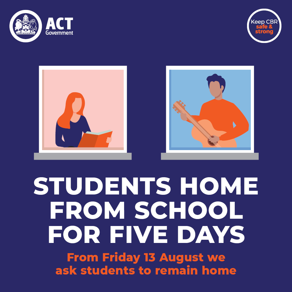 The ACT Chief Minister announced that from 5pm 12/8 ACT public school students should stay at home while the ACT enters a seven day COVID-19 lock down.