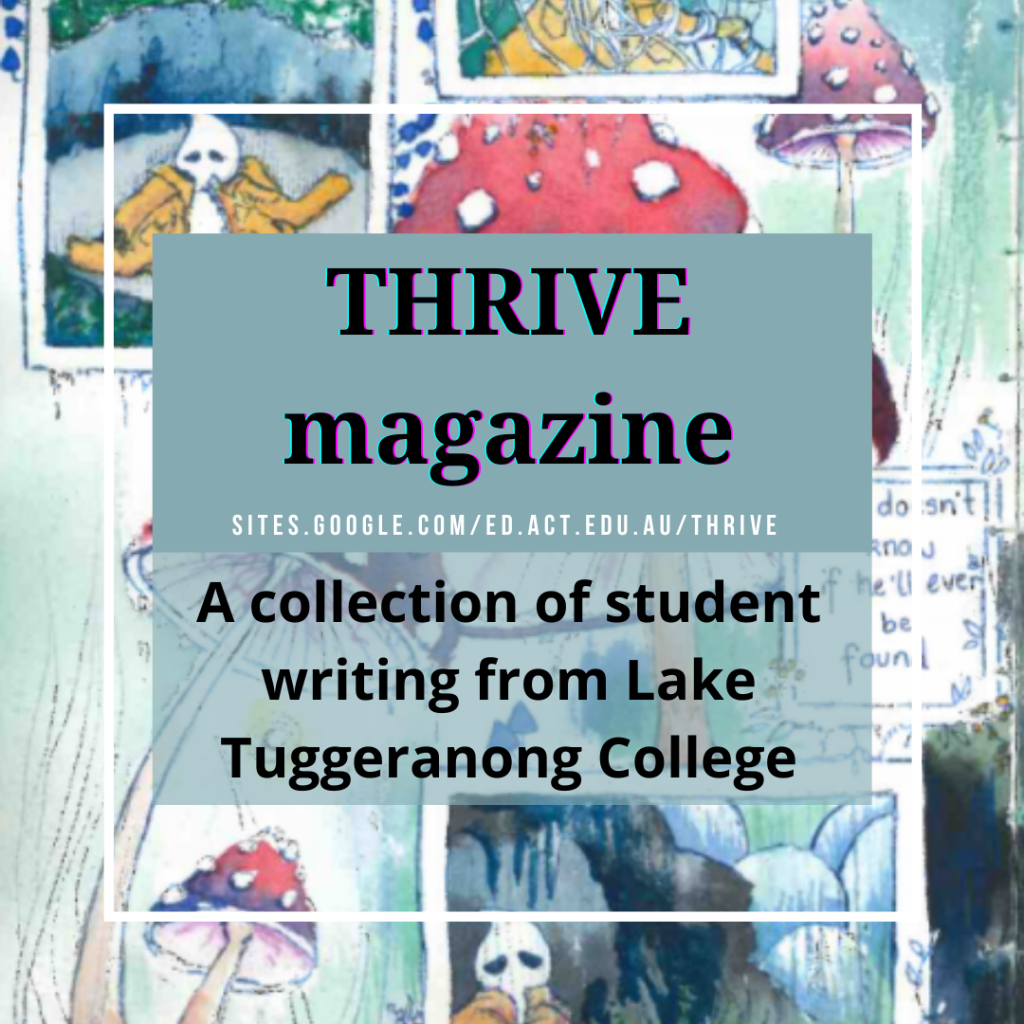 Last year we began the online THRIVE magazine and showcased the work of many talented young authors at Lake Tuggeranong College. This year, we are bringing you even more student work.