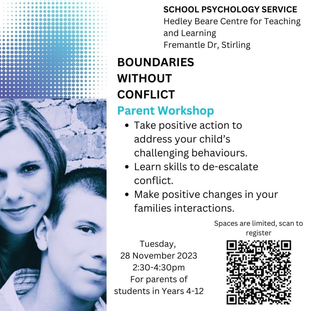 A parenting workshop on addressing challenging behaviours and deescalating conflicts. ![]()