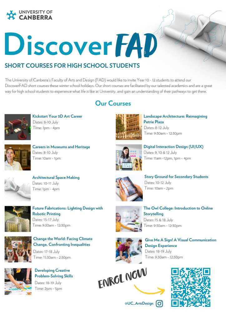 - DiscoverFAD – University of Canberra School Holiday Short Courses