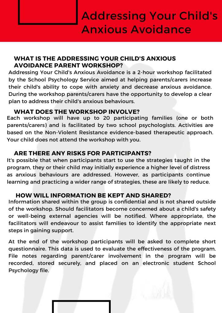 - Addressing Your Child’s Anxious Avoidance Parent Workshop