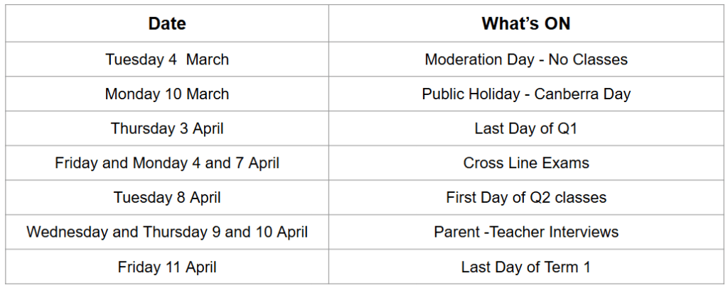 Each year, the first day of every term is a student-free day. We use student-free days for staff development, enabling us to plan in a student-free environment.