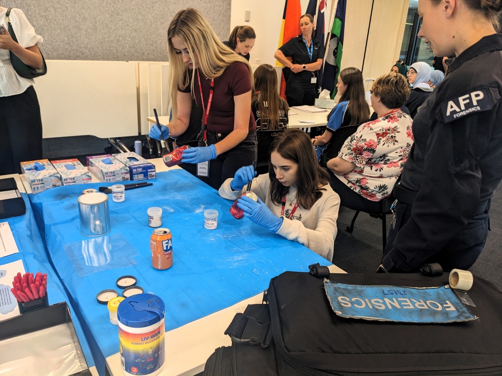 The students toured the facility, learning about crime scene mapping, fingerprinting, signature verification, and blood swabbing. They also had the chance to mingle with forensic officers and scientists over morning tea, asking insightful questions about the field.