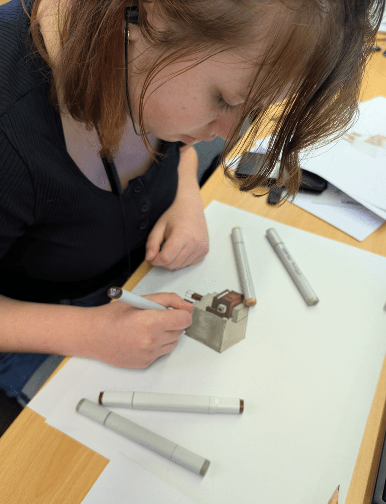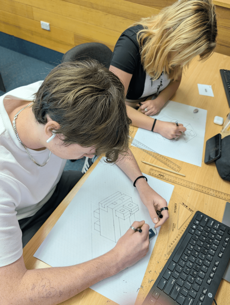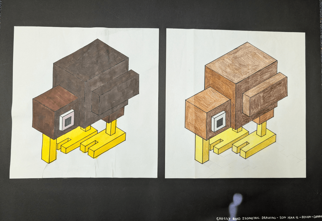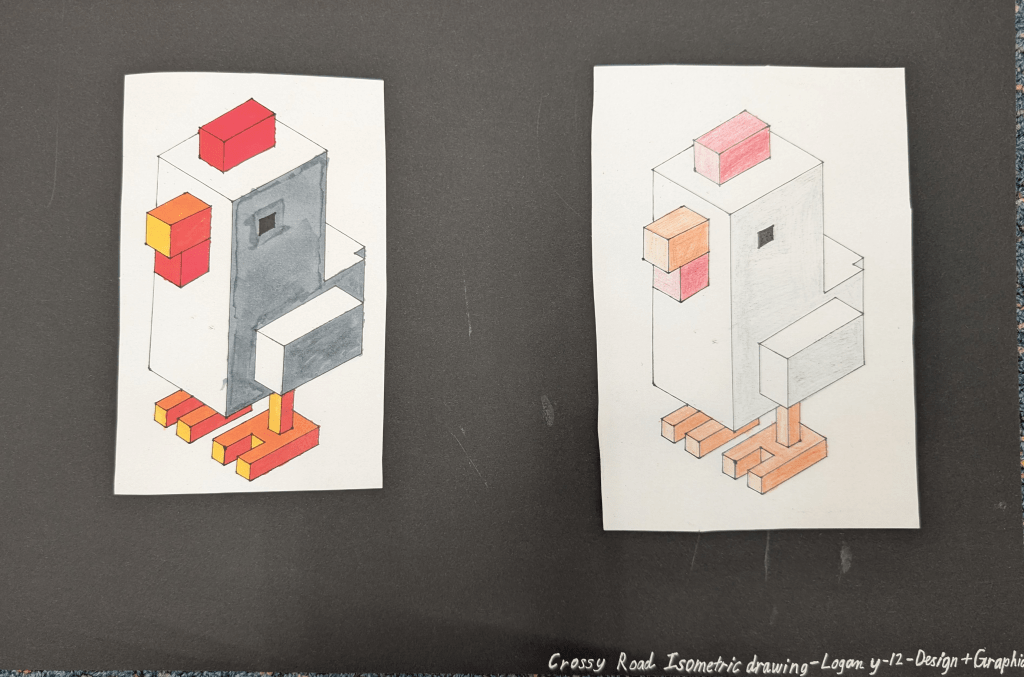 Year 11 and 12 Design and Graphics students have been honing their skills in Design Elements and Principles, experimenting with rendering techniques, and refining their isometric drawing abilities.