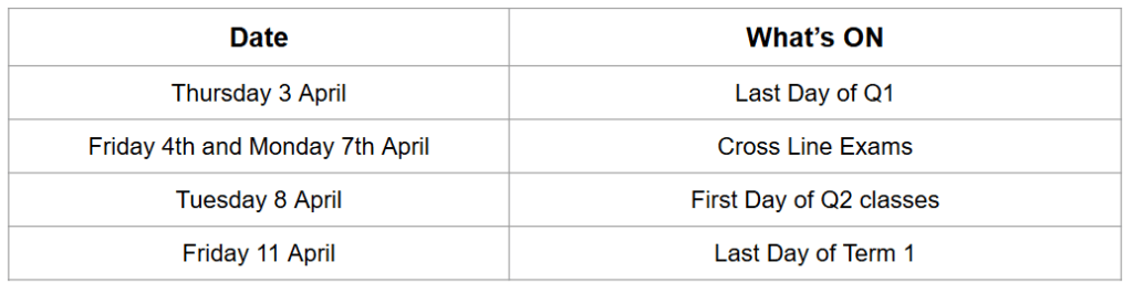 - Important Dates for Term 1