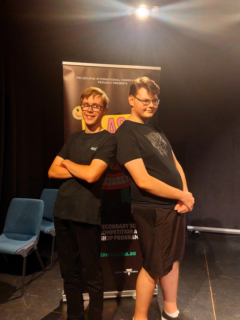 Taylah, Eli, and Jemimah are off to the Class Clowns National Grand Final after winning the Canberra Heat at the Canberra Theatre Centre with their skit Geckonomics! 🎭👏