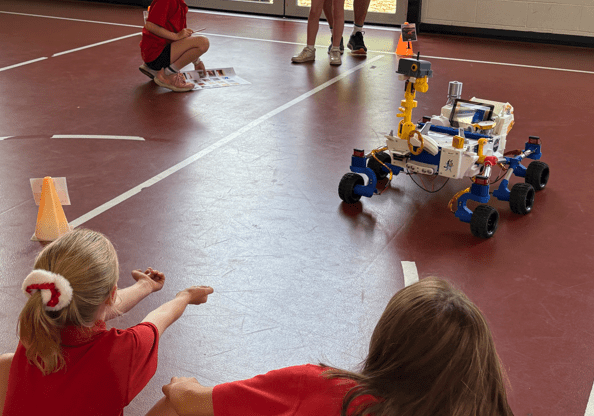 Two of our Year 11 engineering students, Dion and Faye, worked with around 70 Year 2 primary school students, giving each student the chance to remotely control a rover, navigate obstacles and record what they “found” on Mars.