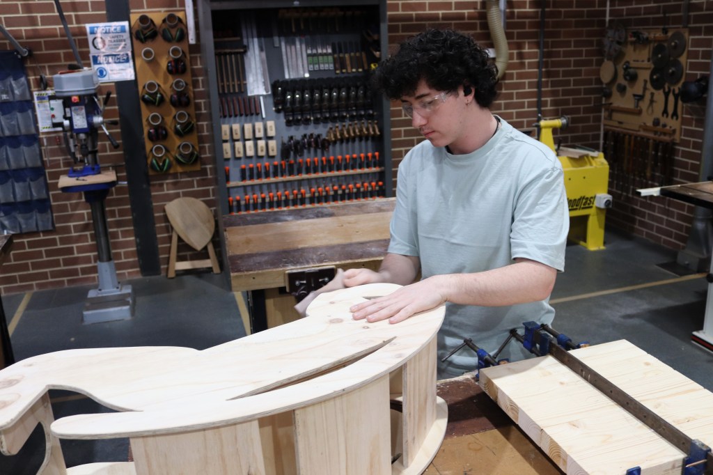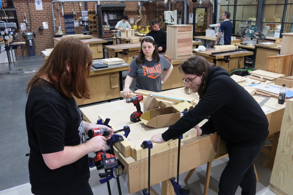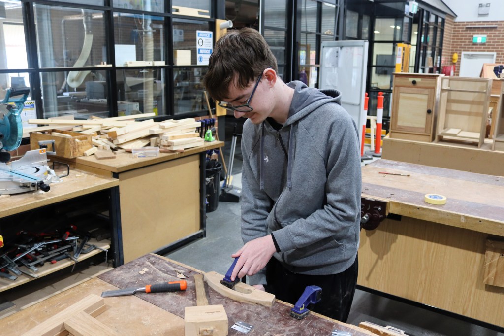 Here are some photos from earlier in the term of our Technologies students putting the final touches on their projects across the wood, metal and automotive workshops.